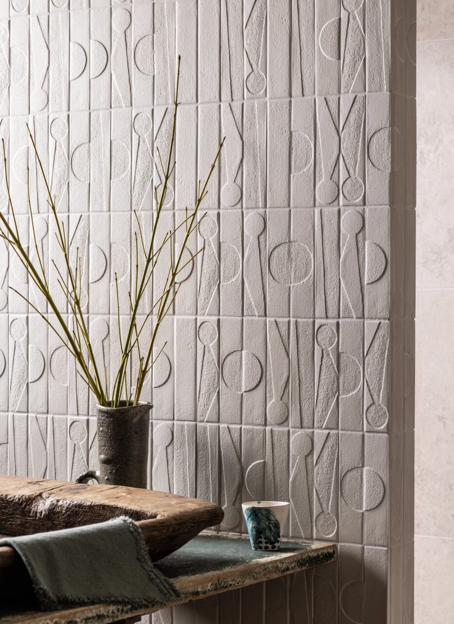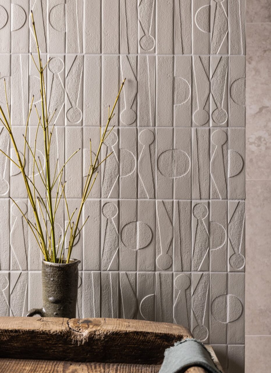 This ivory coloured, brick-shaped tile with artistic symbols is a beautiful choice for creating a unique and personalised space. Perfect for feature walls, splashbacks or accent areas, Alessi Bone Décor Matt brings a sense of artistry and storytelling to both traditional and modern interiors. This range includes six tiles, five decorative options and one plain tile to complete the set, supplied as a random mix. The surface is clay-like and matt and sizing will vary slightly to create a more organic and natural look.