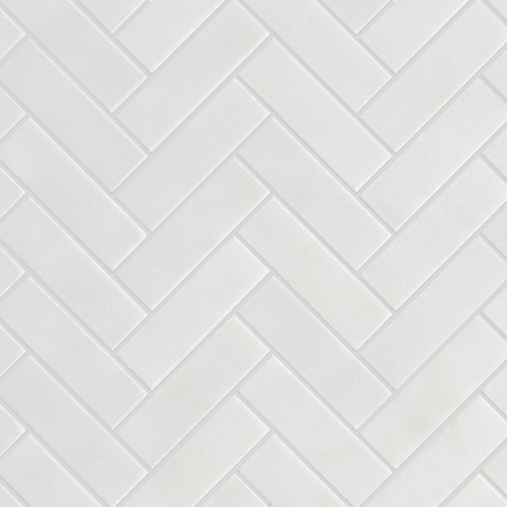 Calacatta Honed Herringbone Mosaic are supplied on a mesh-backed sheet 263x216x10mm approx for ease of installation.