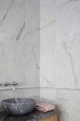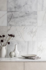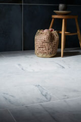 These irresistible Calacatta Vein Honed Marble tiles are as striking as they are cost-effective. Charcoal grey veining dominates with infrequent and subtle light tan and green inclusions too. The backdrop is predominately white or cool grey – traditional marble at it’s very best.