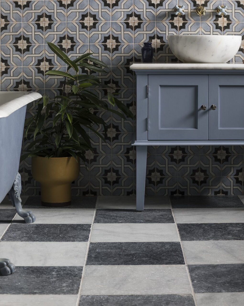 Our Di Scacchi Tumbled Marble Tile is perfect for replicating the look of traditional black & white marble tiles, creating traditional chequerboard flooring. Using our Bluestone & Calacatta Tumbled Marbles to create a contrasting floor tile option with an antique, tumbled edge, that when combined create a beautiful, vintage appearance in any entrance hall, living space or bathroom.
