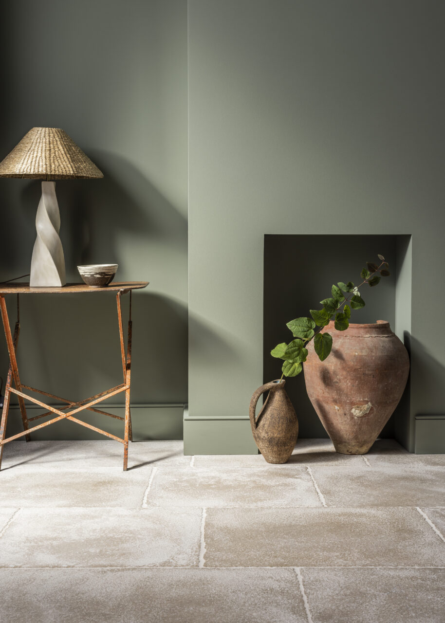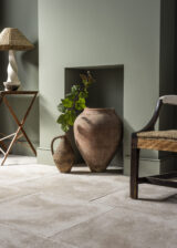 With its beautifully stippled face and calcite inclusions, this natural stone floor tile is a dense limestone that, although textured in appearance, feels smooth to the touch. Its perfectly imperfect surface combines warm beige, honey and oatmeal tones to offer the most characterful of floors.