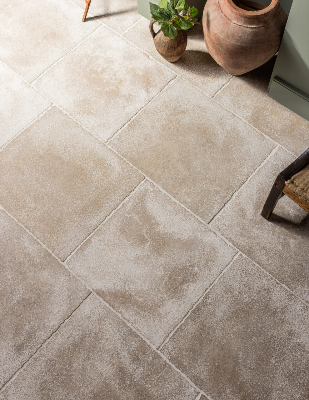 Our Dijon Provence Limestone tile is a beautifully tactile, reclaimed-looking limestone floor tile that has undergone various ageing processes to give it an authentic, time-worn appearance. Its edges have been chiselled then tumbled to create a timeless Provence finish that embodies elegance.