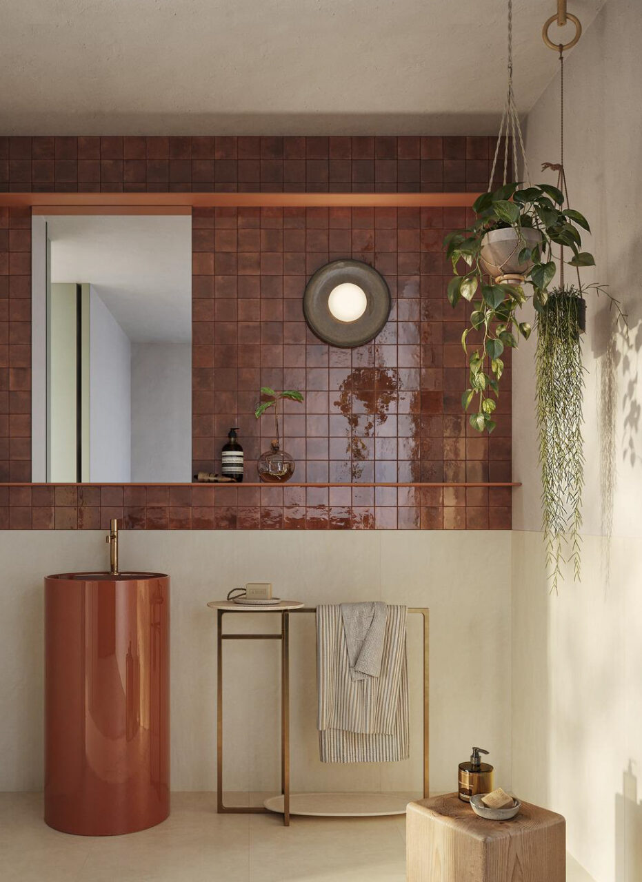 The vintage inspired Hoxton Toffee Gloss Porcelain Square tile features a rich, deep toffee hue with warm caramel and terracotta undertones. Its lustrous glossy finish adds depth and sophistication, blending contemporary style with a classic palette.