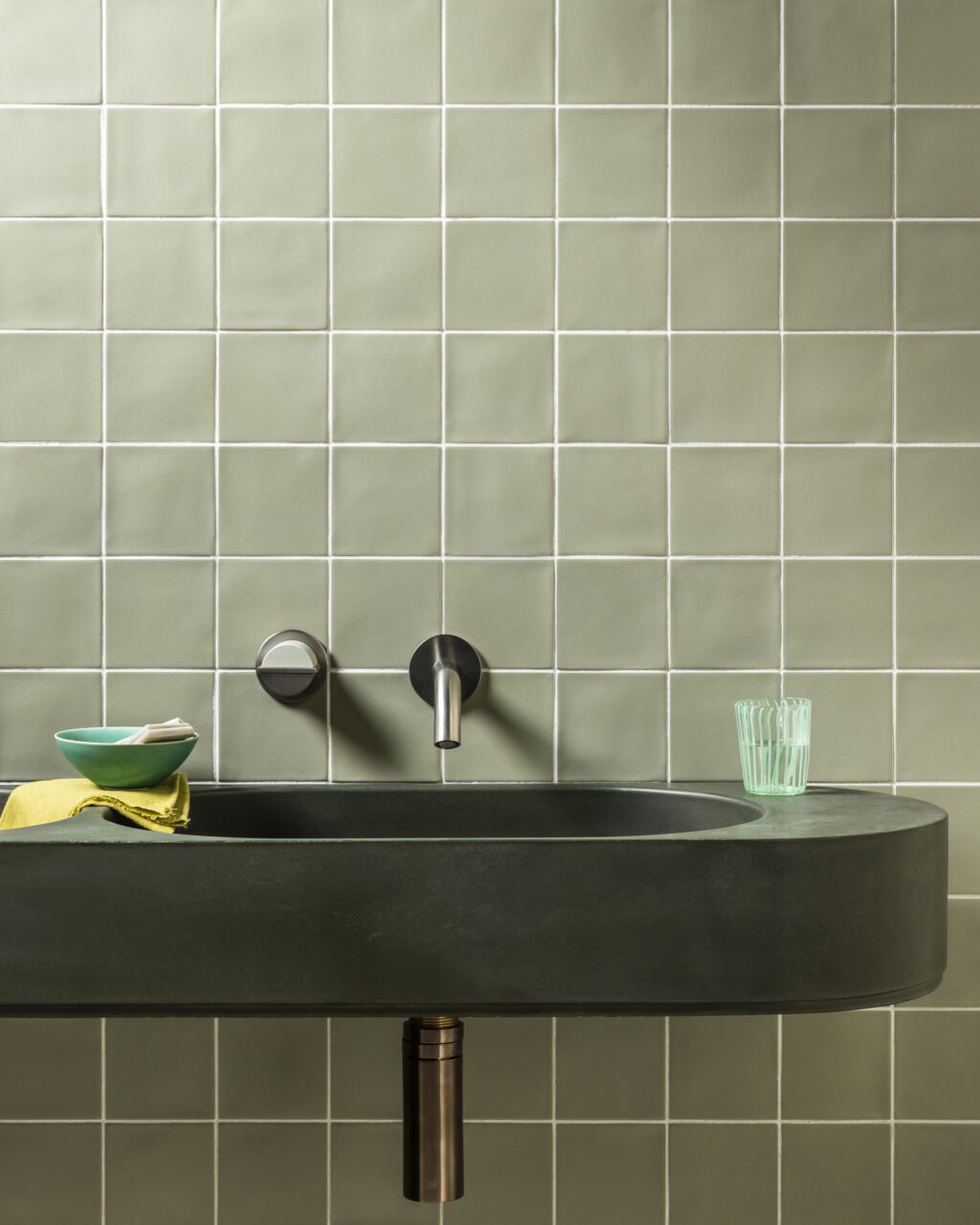 Mix and match with others in the Kobi Satin tiles range for a unique look, or stay on trend with a statement block of sage green.