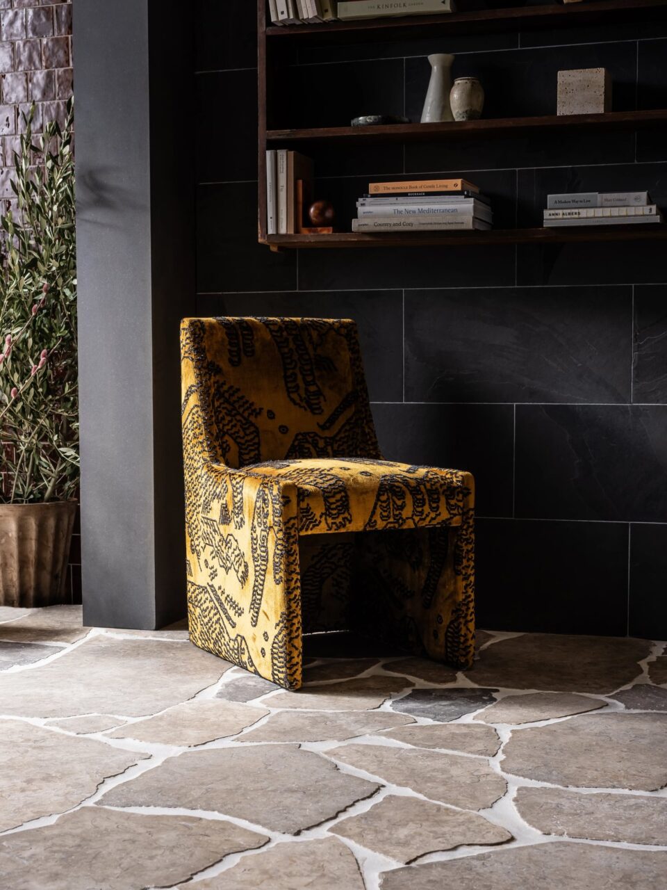 The nature of this dark slate tile is characterised by its deep and rich colour that draws in the eye to create intrigue. The sultry look created by our Nero Riven Slate tile combines beautifully with an elegant modern interior.