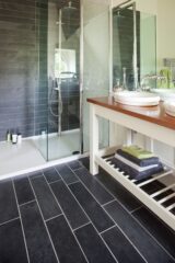 This black slate tile has a finely riven surface which offers texture and interest, creating a tactile feel which highlights the stone’s authenticity. Its calibrated finish means that the riven slate remains smooth while still having the visual impact of natural stone.