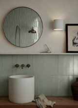 A refined, muted shade that combines elements of blue, grey, and green. Reminiscent of stormy skies, this durable porcelain tile offers a sophisticated and versatile tone. The unusual satin finish is slightly stippled which reflects light wonderfully and gives a tactile element. Available in a long, narrow brick or a wider rectangle, these tiles can be used on their own or in conjunction with their décor counterparts.