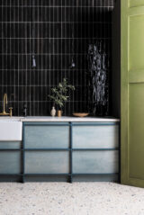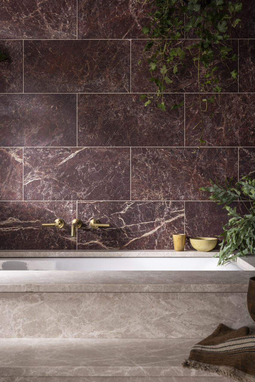 This is the large, cut-to-size slab format (not tile) which can be used to fabricate vanities, bath surrounds, worktops or any bespoke piece.