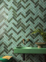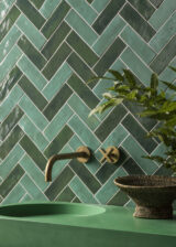 Use these green tiles alone or combine the vibrant finish with the matt terracotta-like options in the range. These include a square décor and a splash of colour.