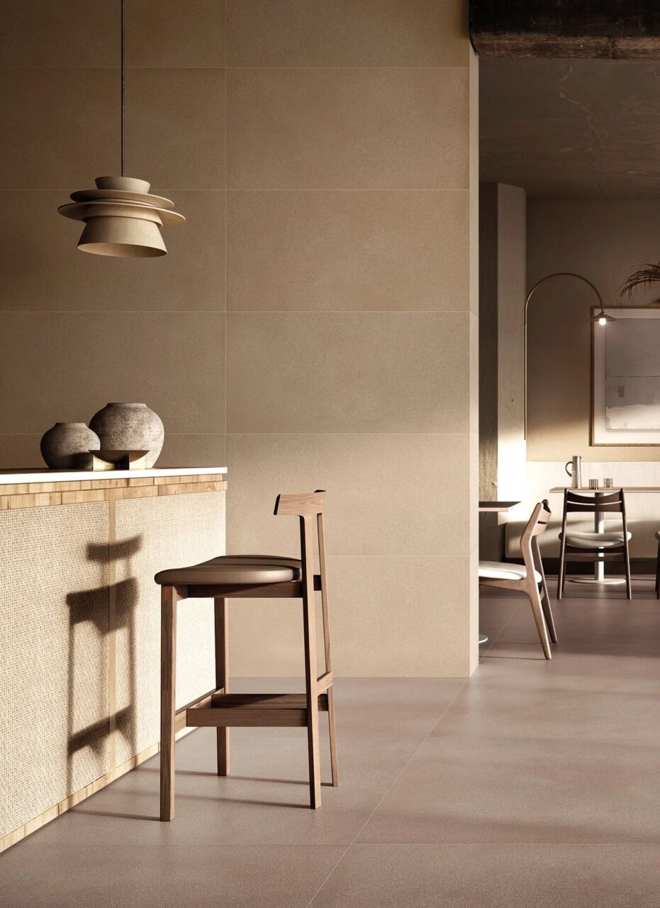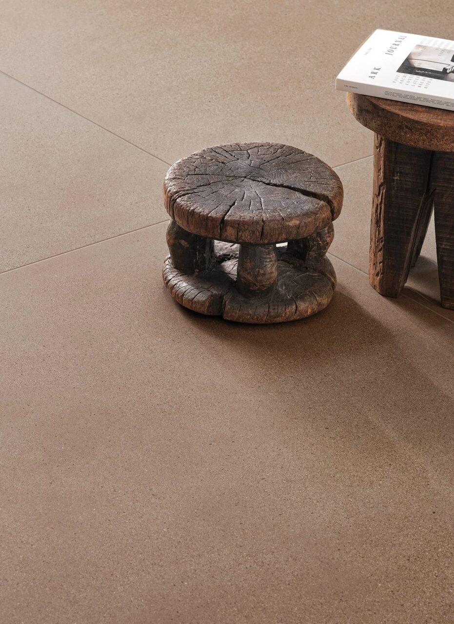 A simple and elegant porcelain tile collection in soft, neutral tones, designed to bring warmth to any space. The surface is smooth and refined yet features a subtle sand-like graphic that gently echoes the look of an ultra-fine terrazzo. Sahara Earth is delicate, understated, and full of quiet character. Its tone sits beautifully within tan, chestnut and cinnamon, evoking feelings of comfort and connection to nature.