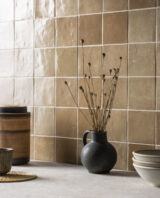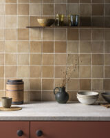 Each colour option offers a mélange of shades with a subtle gloss finish which highlights the surface contours, playing with the light in a unique way. Our sand-coloured zellige tiles are a beautiful cool shade that can complement any kitchen or bathroom space.